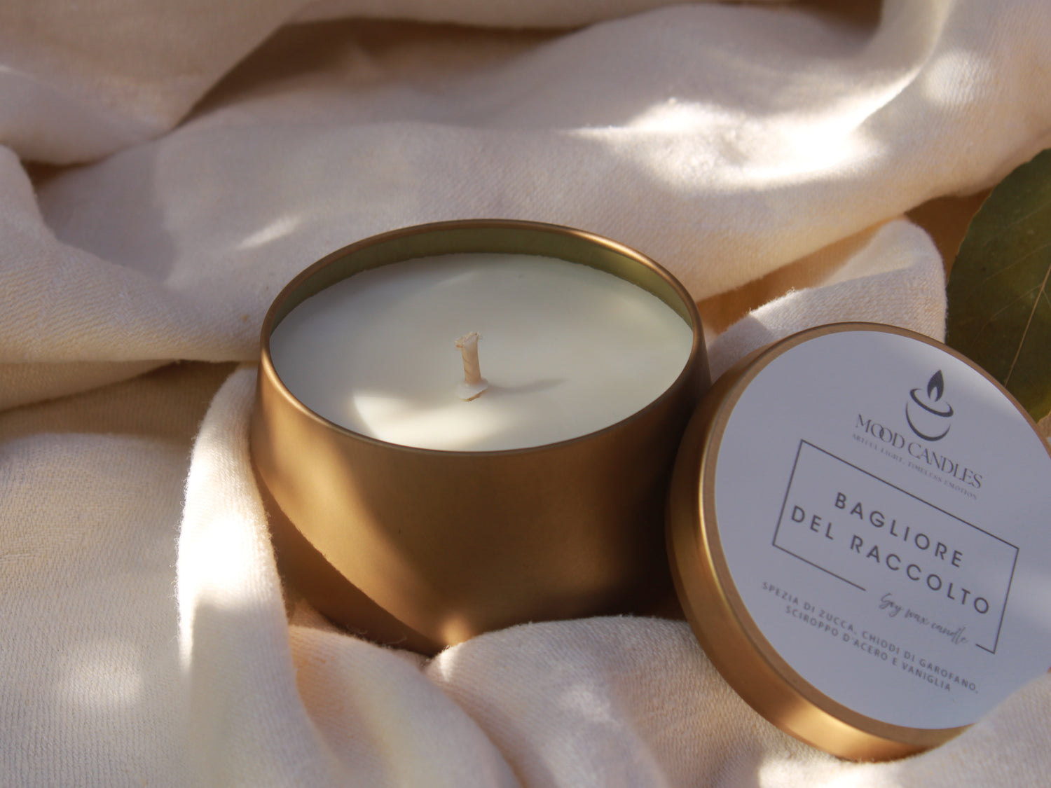 La Linea Aurea rappresenta l’essenza della raffinatezza e dell’eleganza. Assicuriamo una durata di 25 ore con sessione di 3/4 ore ognuna. Queste candele artigianali in cera di soia biologica, colata a mano in un contenitore in alluminio dorato riciclabile ed eco-friendly, offre 180 gr di purissima fragranza naturale in dimensioni compatte (6,5 x 8,5 cm). Perfetta per creare un’atmosfera accogliente e sofisticata, arricchisce l’ambiente di stile, sostenibilità e charme. Un regalo ideale o un tocco di classe per la propria casa, che coniuga lusso e rispetto per l’ambiente.